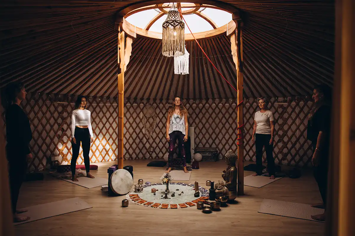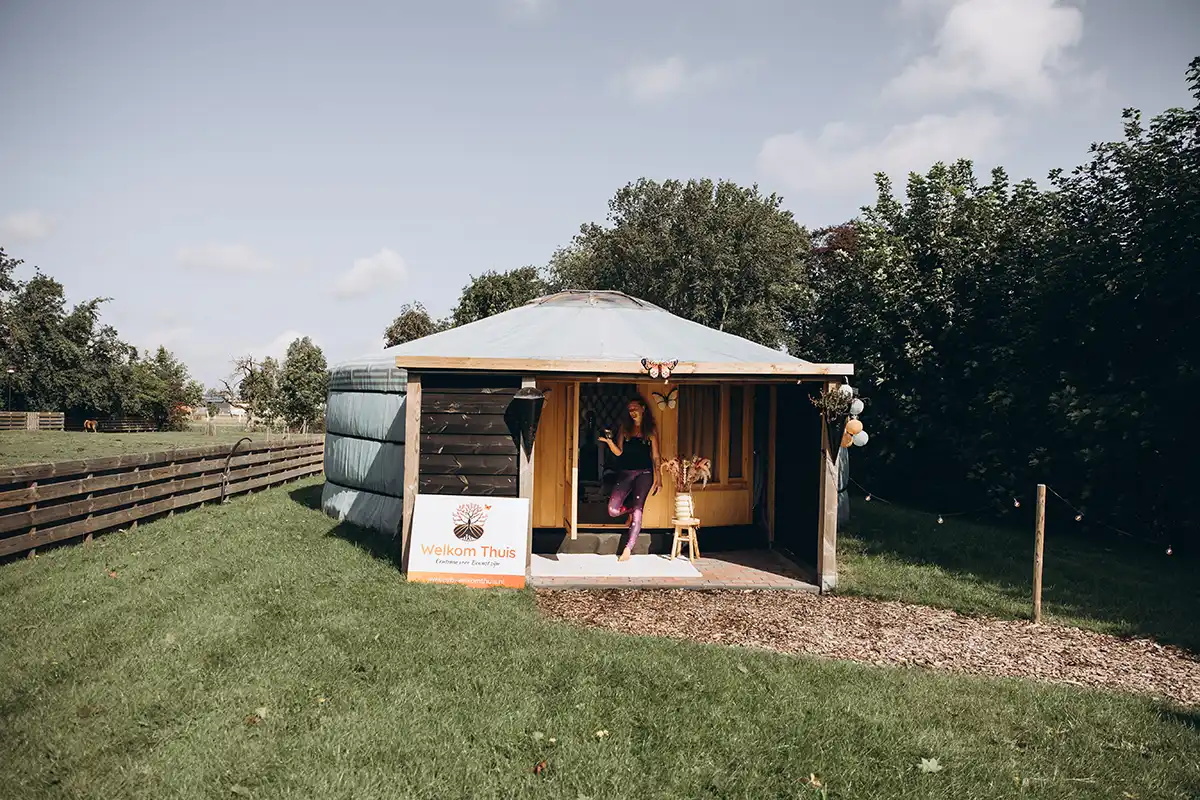 Kom bij mij in de Yurt om te Verdiepen, Verbinden met jezelf en anderen, Vertragen, plezier te maken, een goed en fijn leven LEIDEN.